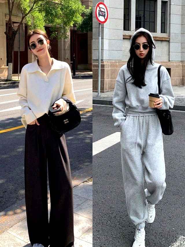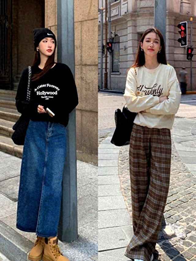 卫衣长度以盖住臀部为限,再长就压个子;阔腿裤脚口宽度22cm左右刚好,太宽像扫把,太窄又没藏肉效果。