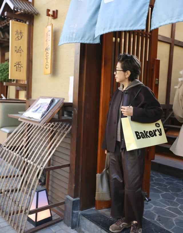 把秀场搬到北京胡同,@北京白阿姨用同款深棕拍了个58秒视频:深棕呢子外套配灰色卫衣和同色锥形裤,点赞超50万,评论区全是“我妈照穿年轻十岁”。60多岁、粉丝200万,她不靠美颜,而是把深棕的“老气”变“高级”。