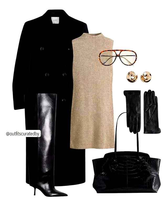 针织连衣裙是懒人福音,直筒版型藏肉显瘦。及膝麂皮长靴包裹紧实,走路不晃。外面套一件直线感大衣,长度比裙子短两公分,层次分明。手拎硬挺公文包,牛皮材质越用越亮,质感随时间提升。
