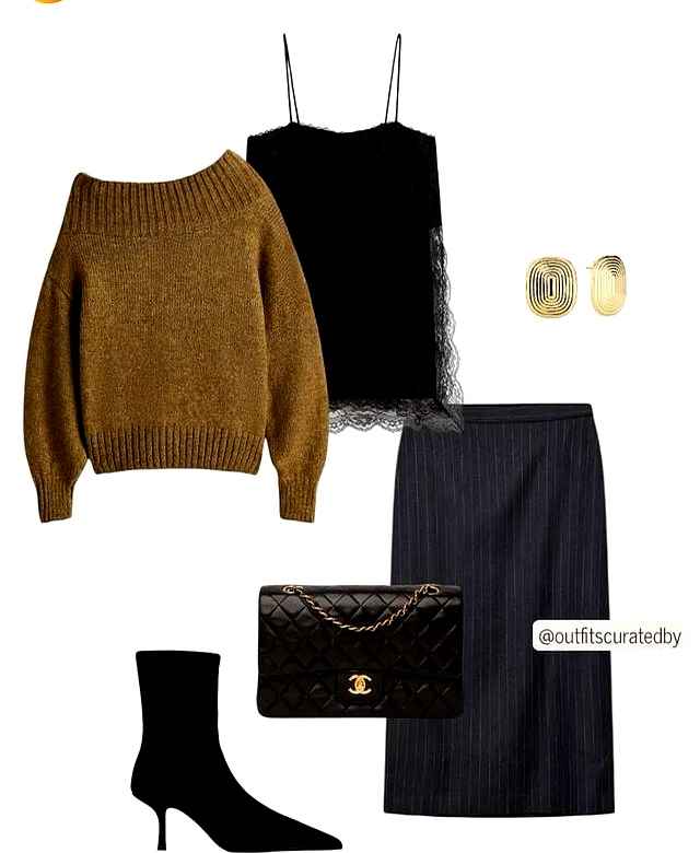 职场需要温柔又干练的感觉,西装半裙正合适。裙长过膝三公分,坐下时遮住大腿,面料挺括不贴身。上身配一字肩毛衣,肩部微露,内搭菲边吊带若隐若现。开会时头发挽成低髻,戴金色小耳钉,焦点全在自信的眼神上。