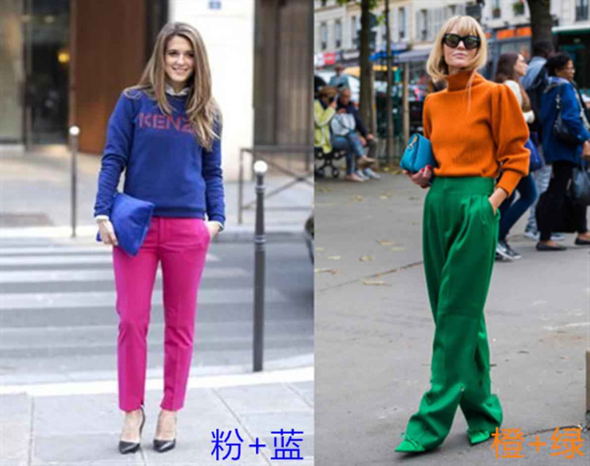 上下身用对比色搭配,比如橙配蓝、红配绿,能突出腰线,优化比例。记得选饱和度低的颜色,更容易驾驭。