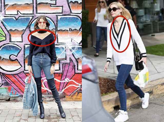 上半身瘦的姐妹可以穿大V领秀锁骨;肩宽的选深V领,视觉上缩窄肩膀,更显纤细。