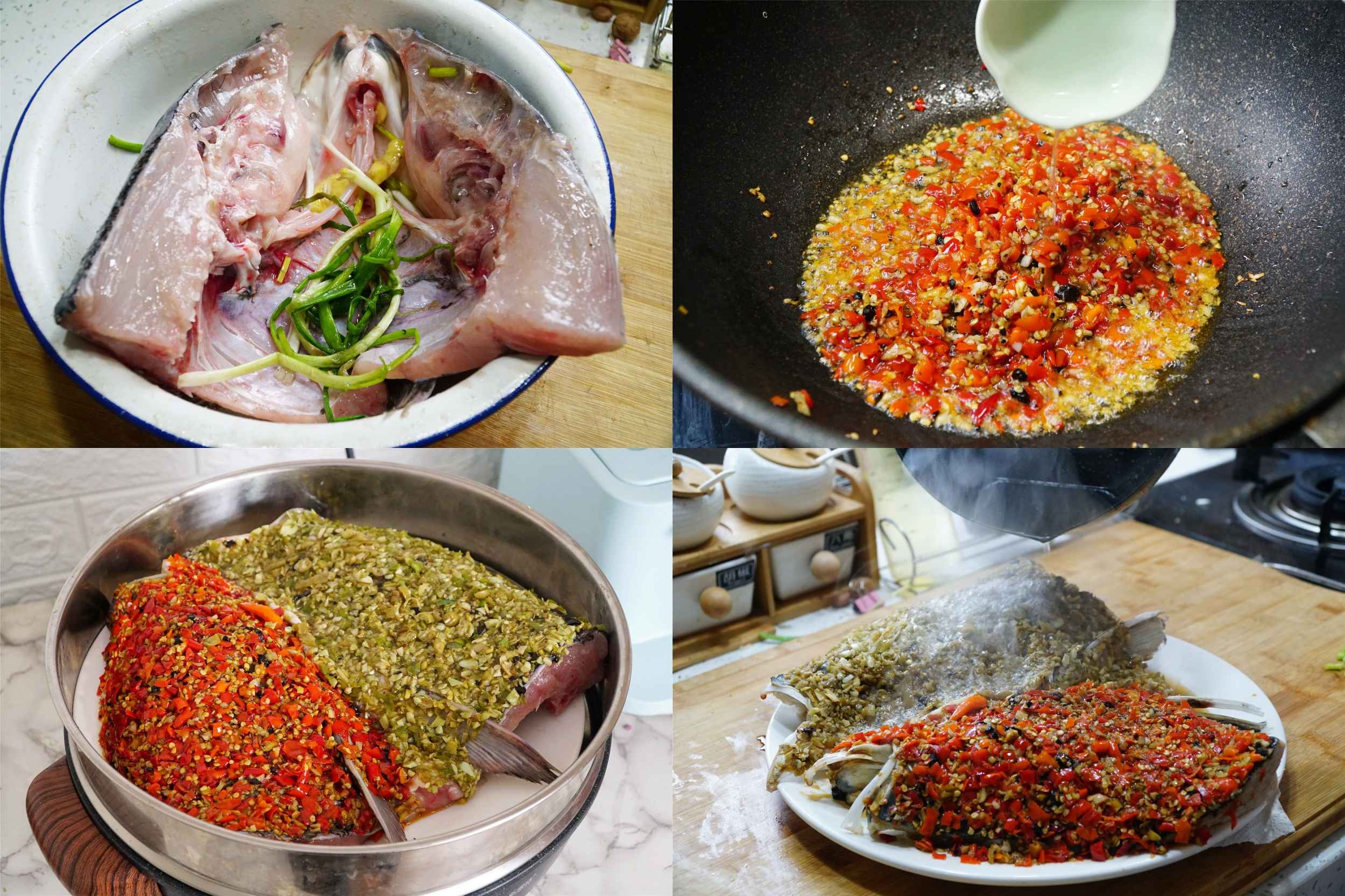 三、双椒鱼头双椒鱼头看着就喜庆,鱼头选鲢鱼头,越大越新鲜越好。