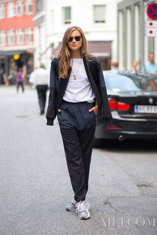 网友“潮流小白”问:黑色套装搭配运动鞋会不会太随便?适合上班穿吗?