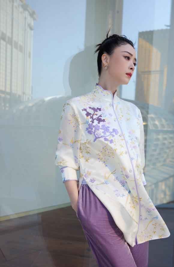 先说说“色不过三”有多实用,你看蒋欣这身打扮,主色调就围绕浅金色和淡紫色展开。内搭一件白色新中式上衣,上面点缀着金色和紫色刺绣,瞬间营造出东方特有的含蓄美感,下身裤子颜色与马甲呼应,整体看起来干净利落,气质瞬间提升!