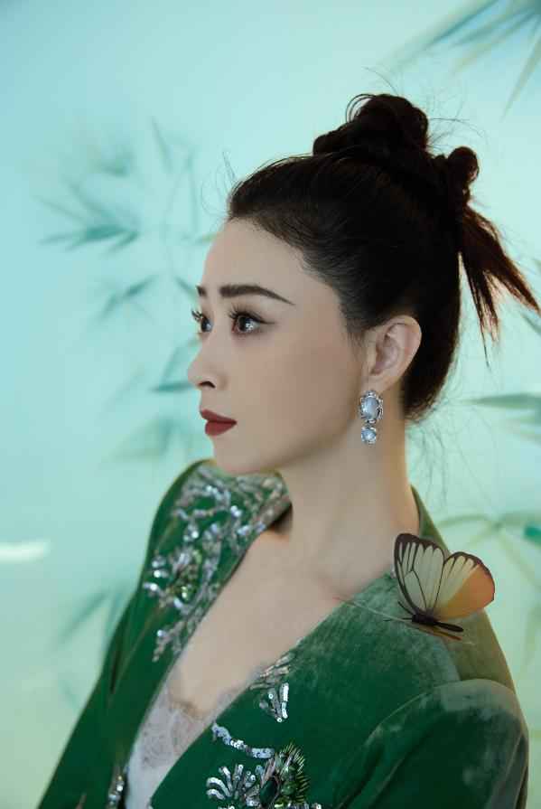 肤色偏黄或黑的女性可以试试绿色系新中式,蒋欣这身选了丝绒质感的墨绿色,像把森林的深邃感穿在身上,显得贵气又活力十足。这里“色不过三”玩得更溜:以墨绿为主调,银色刺绣做点缀,内搭纯白吊带平衡,三种颜色控制得恰到好处,既保持中式配色的克制,又用浓烈色彩撑起气场。