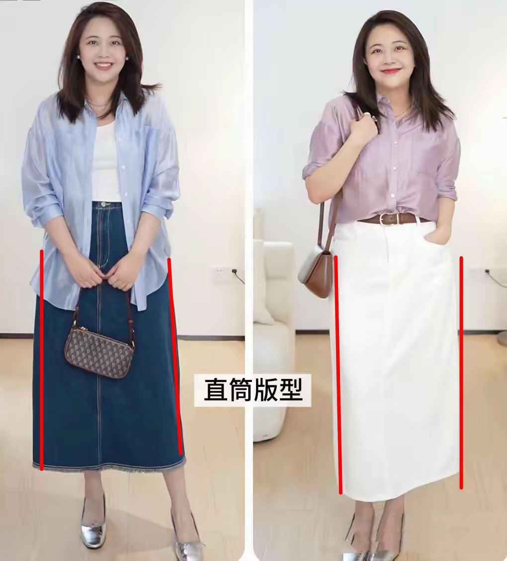 直筒牛仔裙可以配中跟鞋子,走路稳当还显腿细。搭配轻薄衬衫,轻松穿出女神范儿。