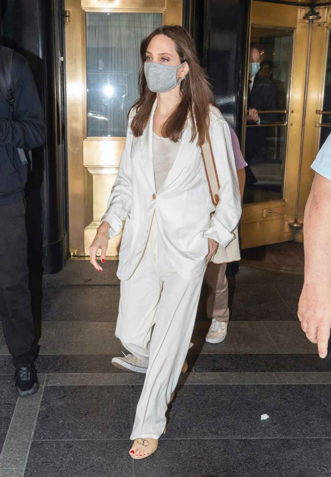 朱莉2019年联合国演讲就穿了这个组合,配简约首饰,更显精致。▼