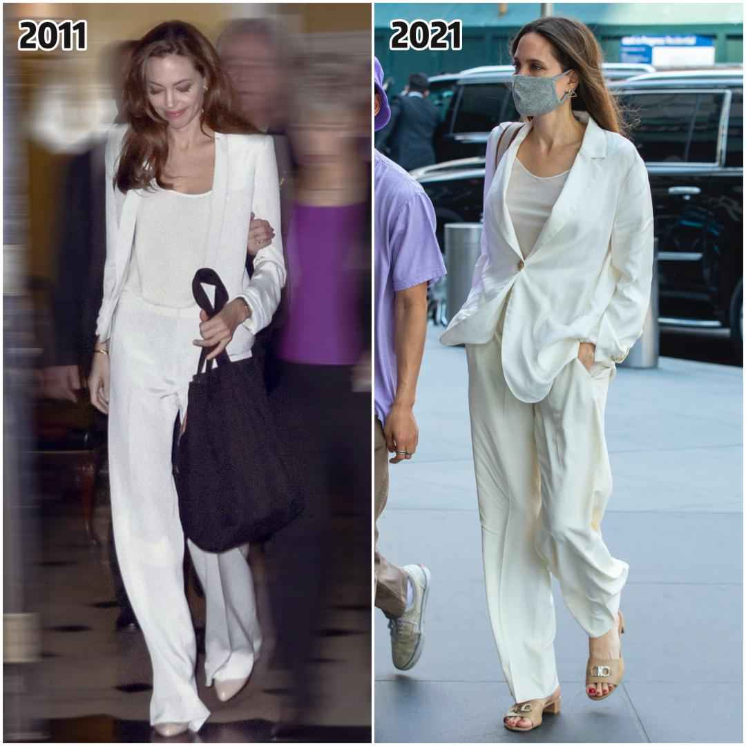 今年朱莉甚至穿白T配黑裤登上了英国版《VOGUE》杂志大片。▼