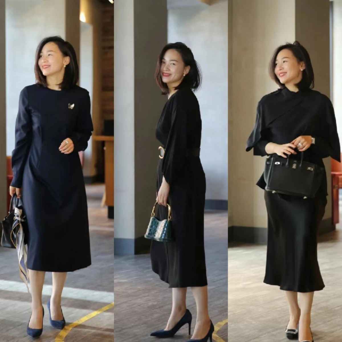 小黑裙就是个不错的选择,经典颜色配上过膝设计,既能勾勒身材曲线,又显得很端庄。小黑裙还能突出腰线,修饰臀腿线条,搭配黑色浅口鞋,视觉上拉长腿部,显高又显瘦。