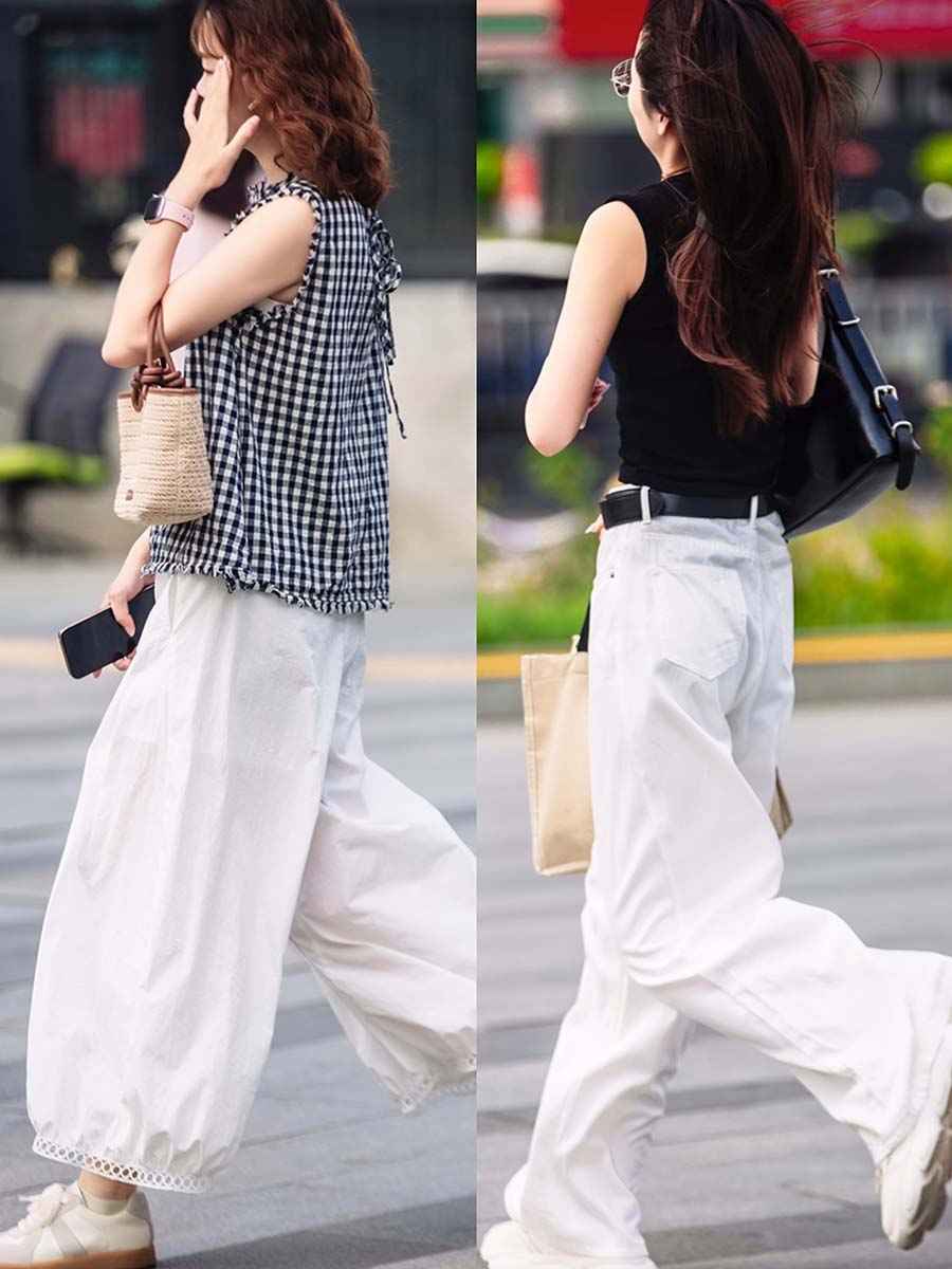 紧身款夏天穿又热又显胖,郑州女生更爱宽松版型。阔腿裤从腰部自然垂下,遮肉还显腿直;灯笼裤休闲感十足,适合日常各种场合。