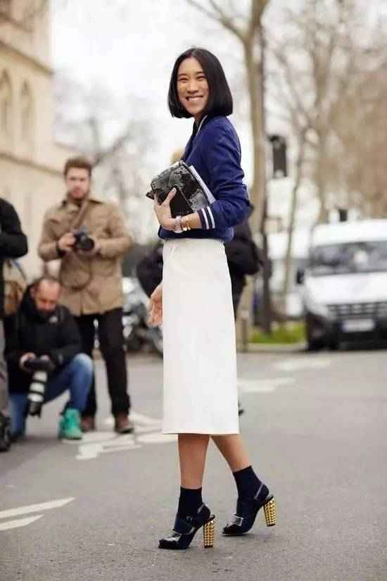 答:强烈推荐 燕麦色、浅灰或同色系的羊毛堆堆袜。勃肯鞋本身有点笨重感,蓬松的羊毛袜能很好地平衡这种体积感,营造温暖的冬日氛围。把袜筒在脚踝处堆出一些褶皱,层次感立马就有了,完全符合现在流行的“慵懒时髦”公式-9。问:穿九分牛仔直筒裤和帆布鞋,想露袜子边,什么颜色最显腿长?