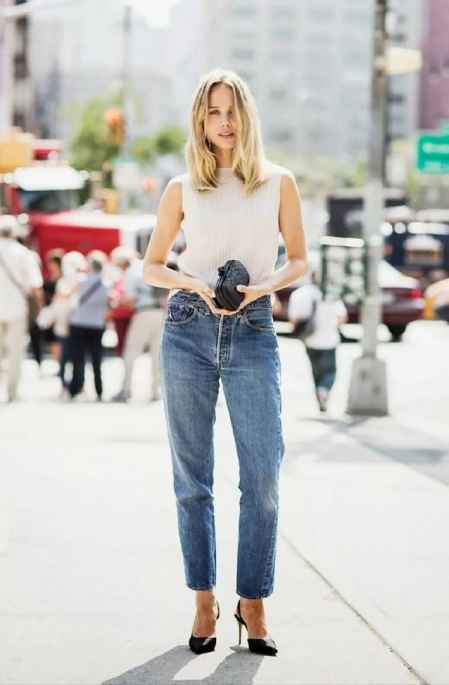 等到天气热起来,各种小吊带、修身T恤就该出场了。这时候,微喇牛仔裤配什么上衣的答案,就是要够“短”、够“瘦”。一件简单的纯色短款吊带背心,搭配高腰微喇牛仔裤,瞬间拉出“胸以下全是腿”的比例。Bella Hadid就这么干过,搭配牛仔靴,又飒又美-7。这种穿法特别适合梨形身材,上半身显瘦,下半身的微喇完美平衡胯宽,辣得恰到好处。