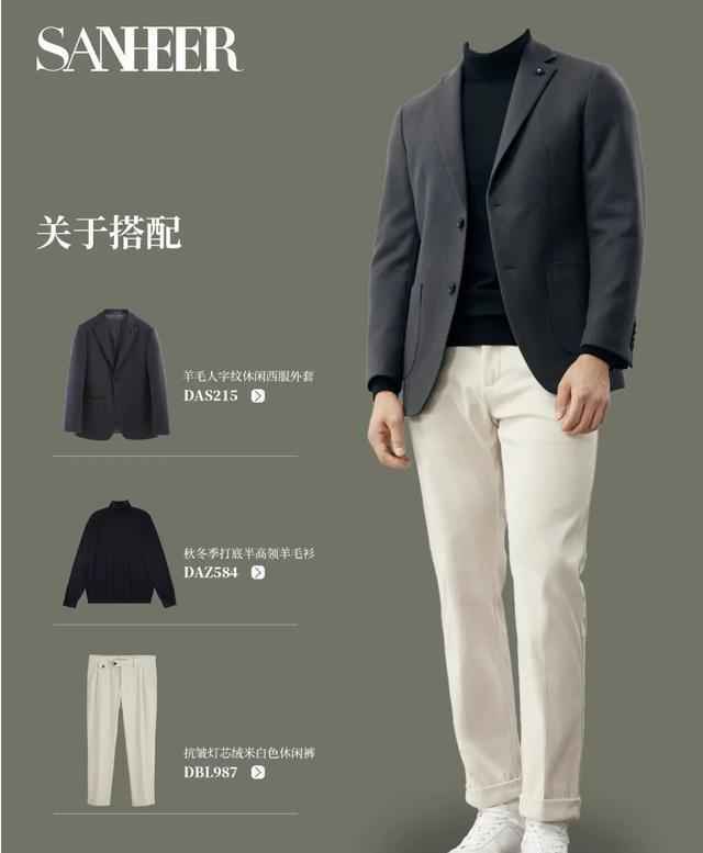 把白衬衫换成灰褐渐变高领,同一件外套瞬间从正式变休闲。