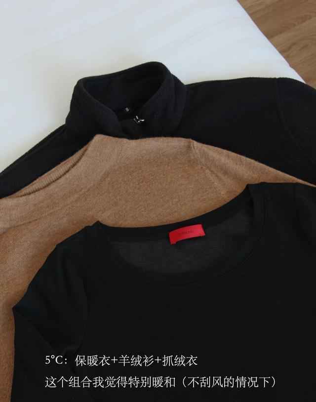 -通勤5℃左右:保暖内衣(中高领)+羊绒衫+中长防风外套或薄羽绒。