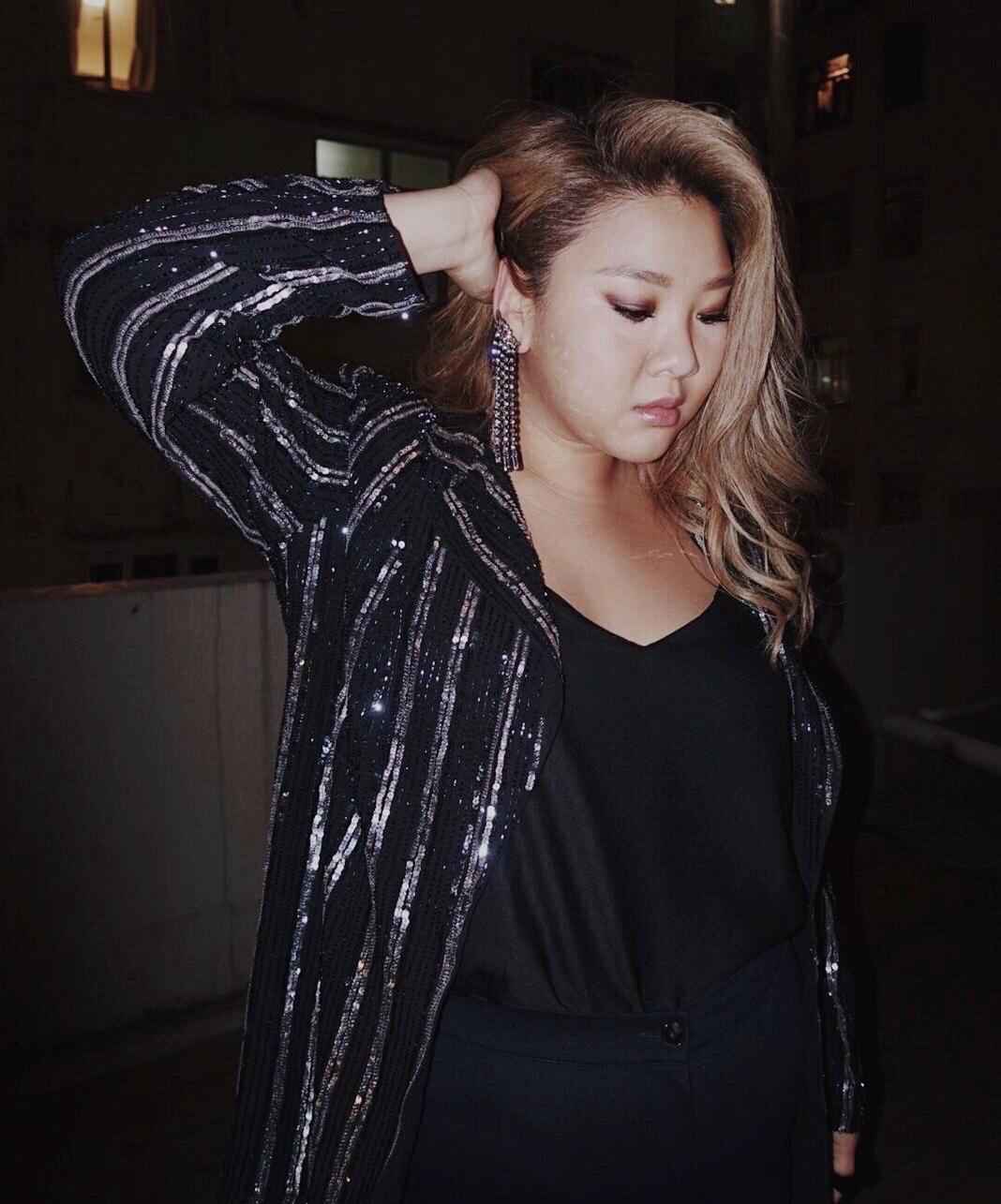 郑欣宜用亮片西装搭配黑色内搭,180斤照样性感迷人