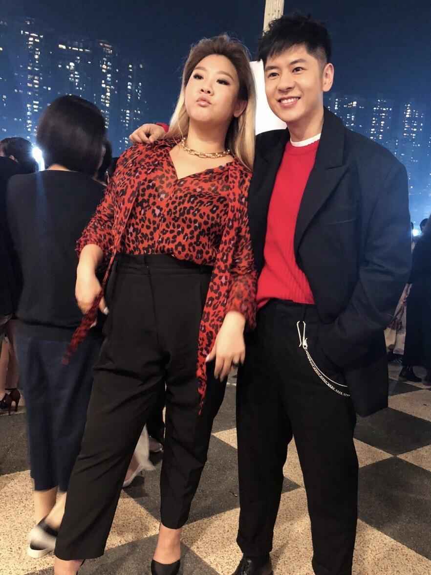 V领黑色内搭能拉长颈部线条,比常规衬衫更显个性。郑欣宜虽然身材丰满,但自信展现肌肤,落落大方,给人留下好印象。