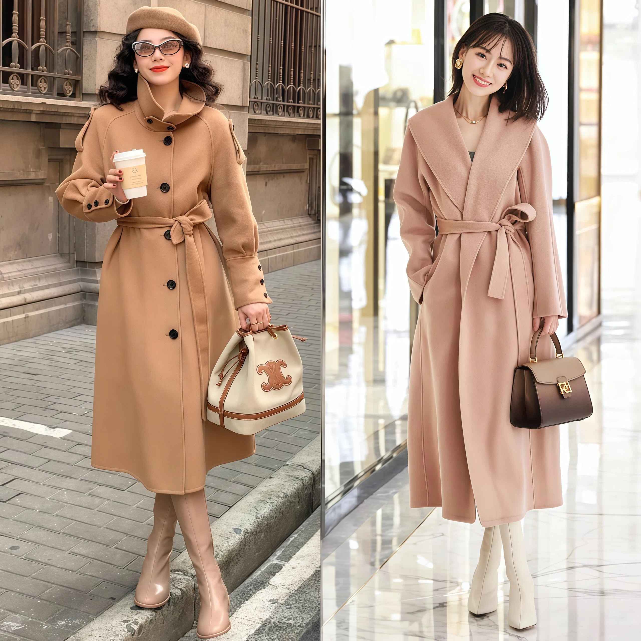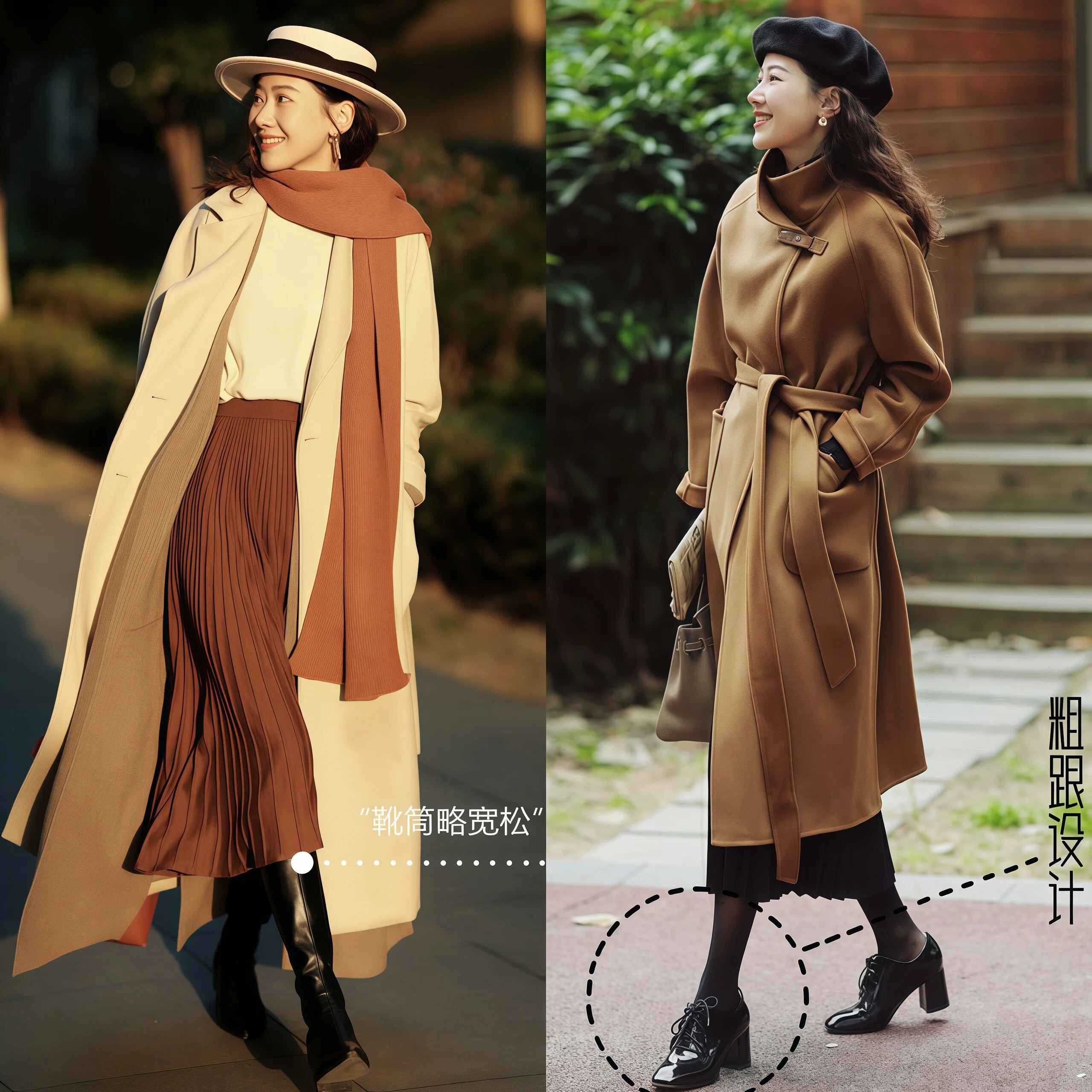 很多小个子姐妹不敢穿长大衣,其实选对版型就没问题。带腰带的X型大衣是首选,系上腰带明确腰线,视觉重心上移,自然显得高挑有精神。