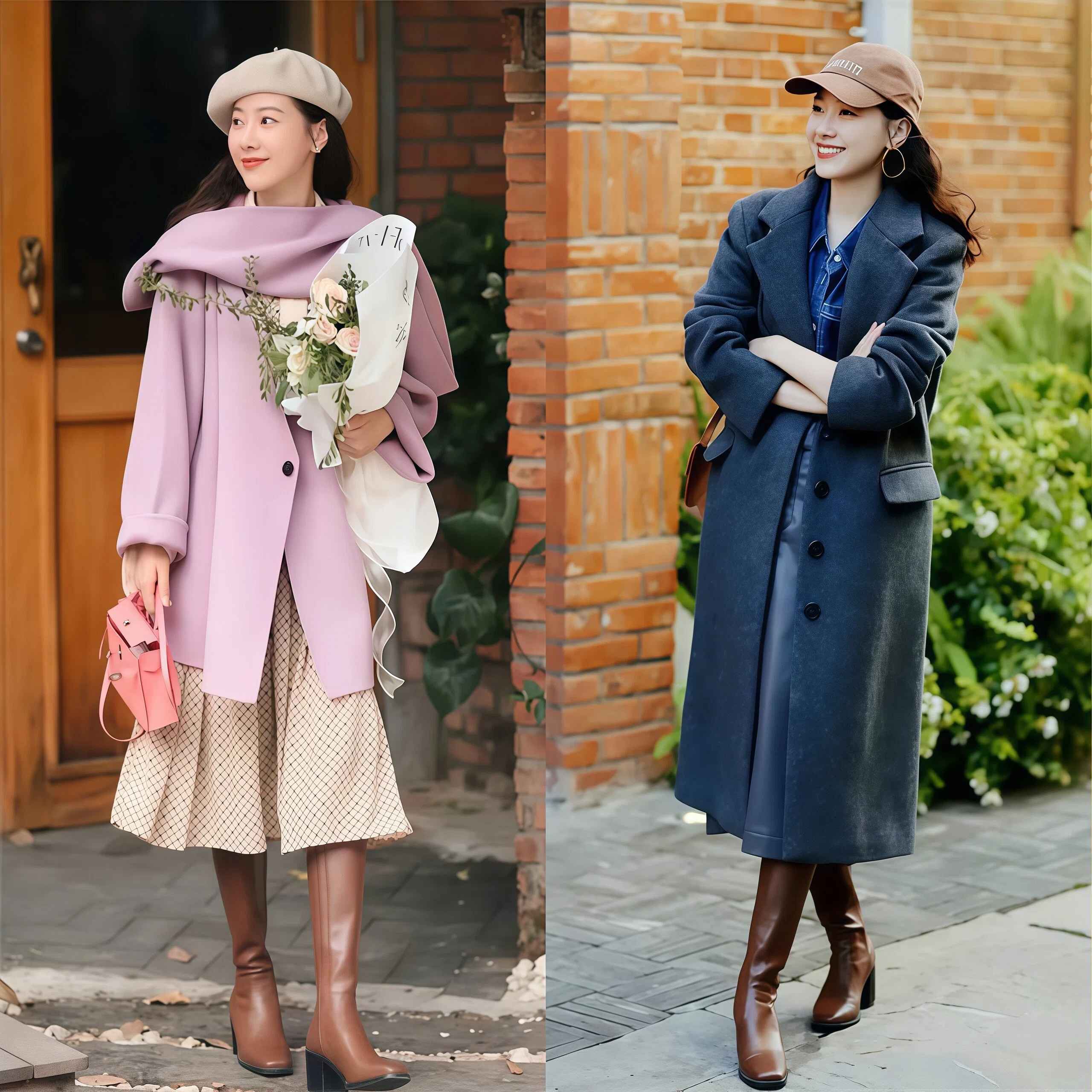 深冬穿裙子,靴子是绝配。长靴或紧口短靴能包裹脚踝,保暖性强。皮质靴子的硬朗感搭配大衣和裙子,刚柔并济,走路带风,大女人范儿十足。