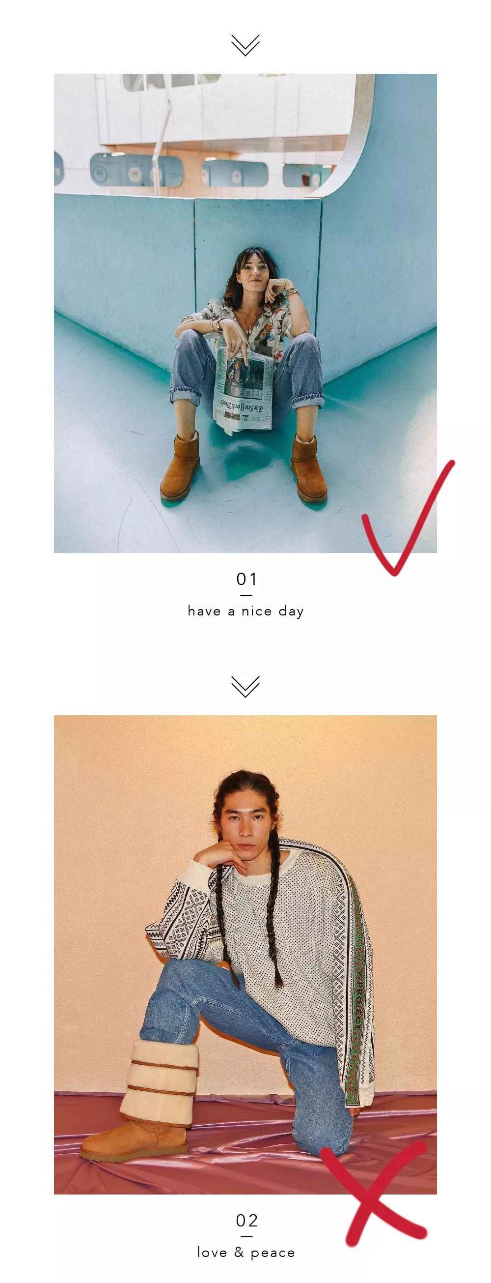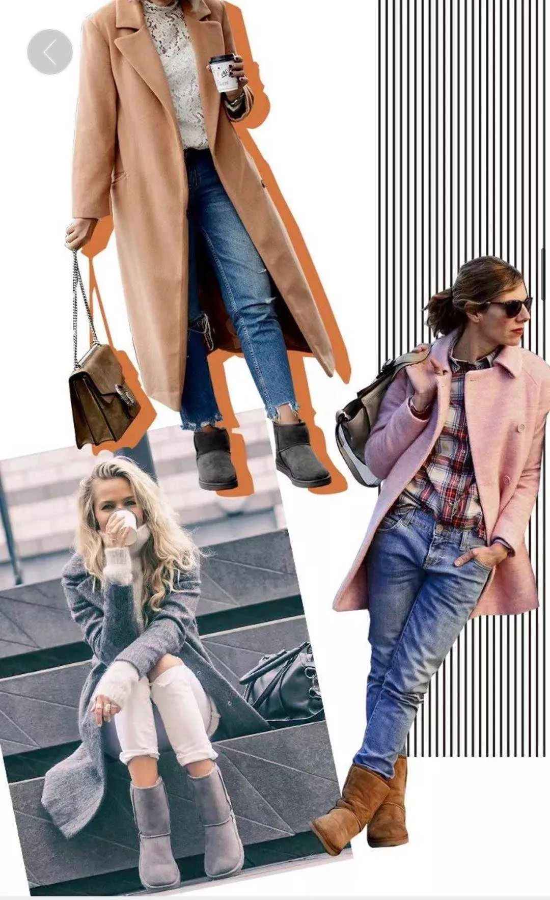 对了,上身也要尽量简洁!UGG搭配皮草那种复杂风格已经过时了,别再尝试了。还有,UGG本身别选太花哨的哦!