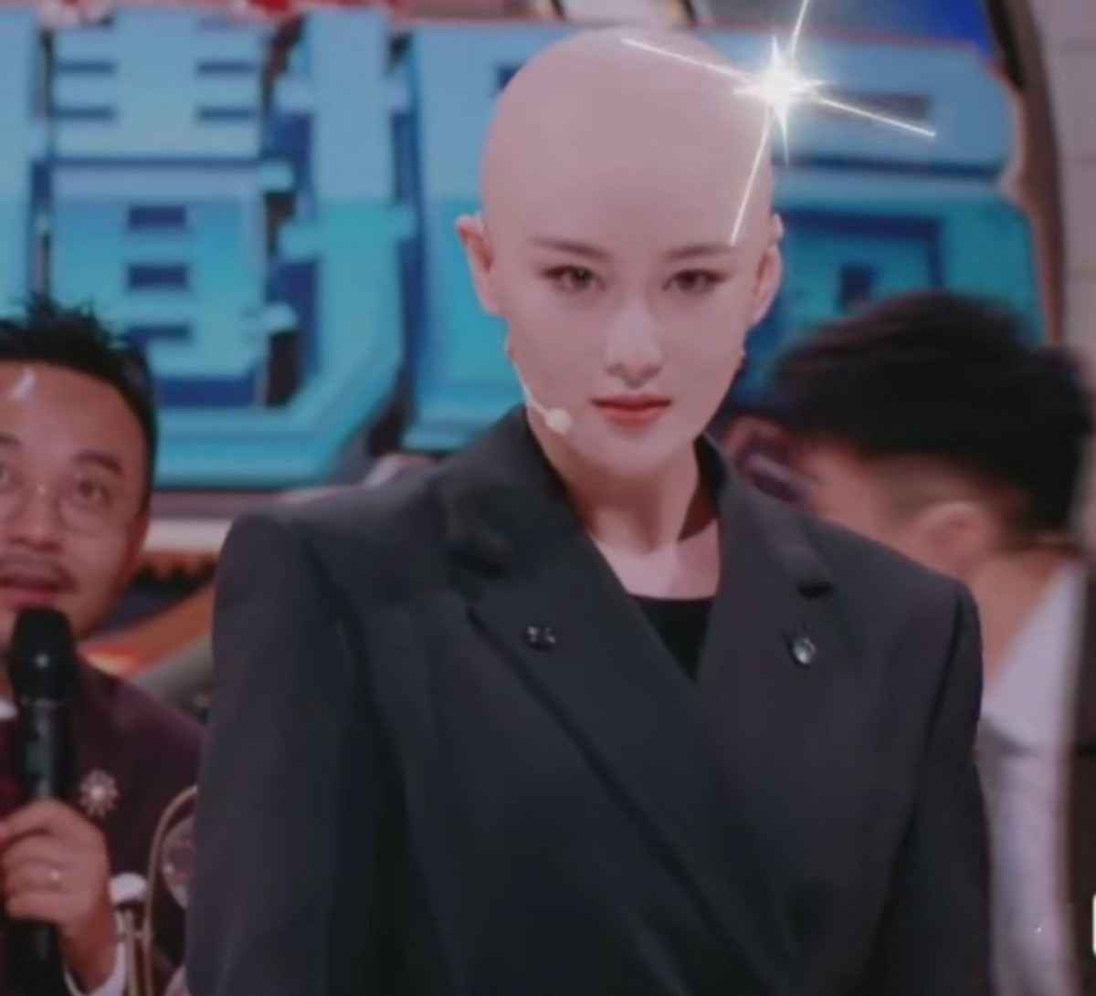 其实不少女演员都试过光头造型。比如张馨予曾在节目中以光头配西装亮相,帅气造型把汪涵都看呆了。