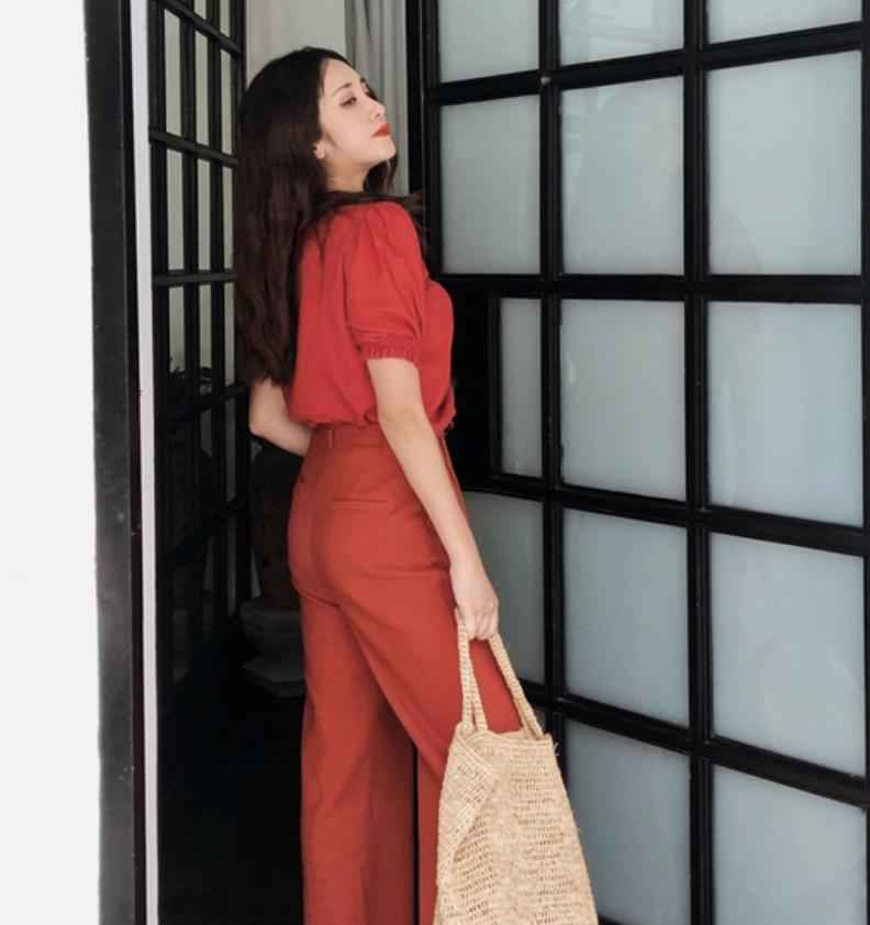 宽松的阔腿裤能完美隐藏真实腿型,靠版型撑起空间感,遮肉效果一流。但屁股扁平的姐妹得注意裤子的臀围设计,不然正面好看,后面就露馅了。