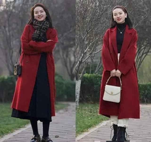 材质才是穿红色的关键。丝绒面料像会吸光的深井,暗红色配珍珠耳环,直接复刻Gucci秀场的优雅;毛呢材质则自带高级感,同色系叠穿出层次,远看就像把一杯热红酒穿在身上。避免亮面化纤材质,那东西一出门就容易显廉价,风一吹全是过节俗气感。