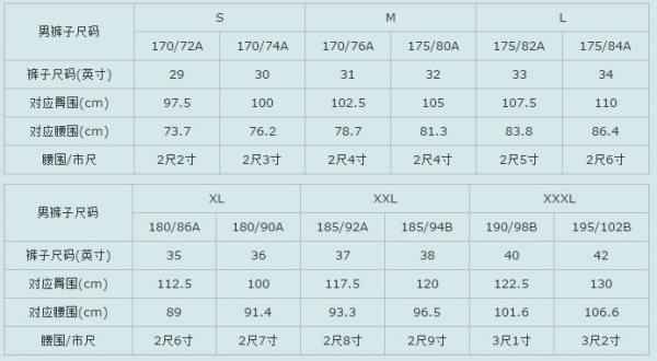 | 男性 | 165厘米 - 180厘米-6-8 | 55公斤 - 75公斤-6-8 | 男装M码对应的中国标准码常是165/84A或170/88A-6。 |