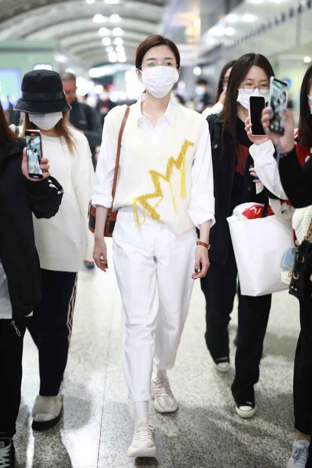 毛衣软糯慵懒,如果下身也宽松会显拖沓,江疏影常穿修身收脚裤提升气质,再塞衣角突出腰线。