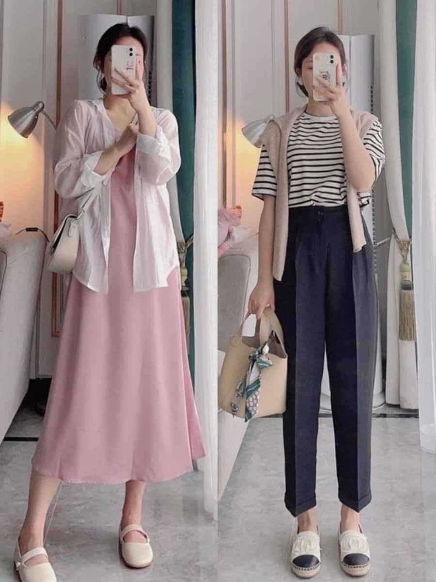 高腰款是救命神器,外套不明显可以加腰带强调腰线。上衣选修身或插肩袖显秀气,下装挑直筒裤、阔腿裤等直线剪裁,拉长腿部线条。