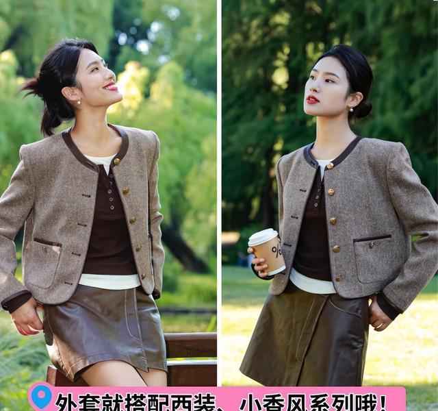 今年秋冬,短外套和短裙的组合简直火到不行,成了很多年轻女孩的日常穿搭首选。