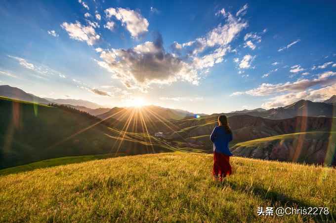 推荐穿法一:鲜艳的衣服,比如红色或亮黄色,在草原上很出彩。碎花裙也能走清新风。