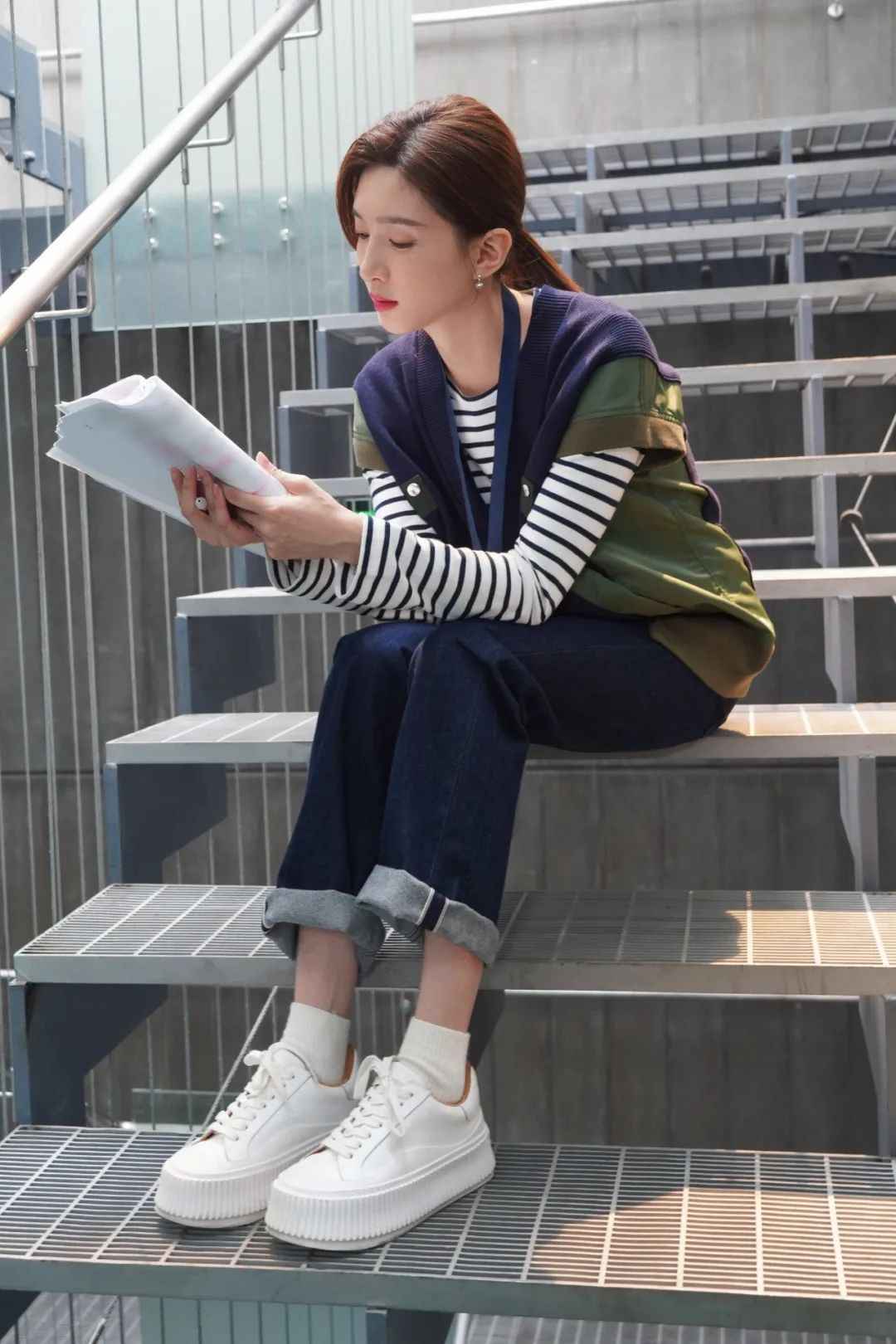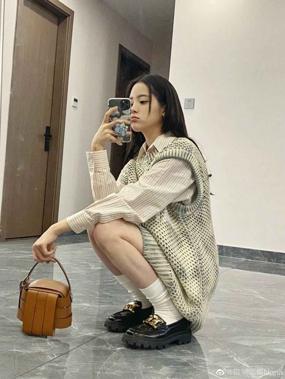 剑桥包和玛丽珍鞋增加学生气,让她的少女感更清新。