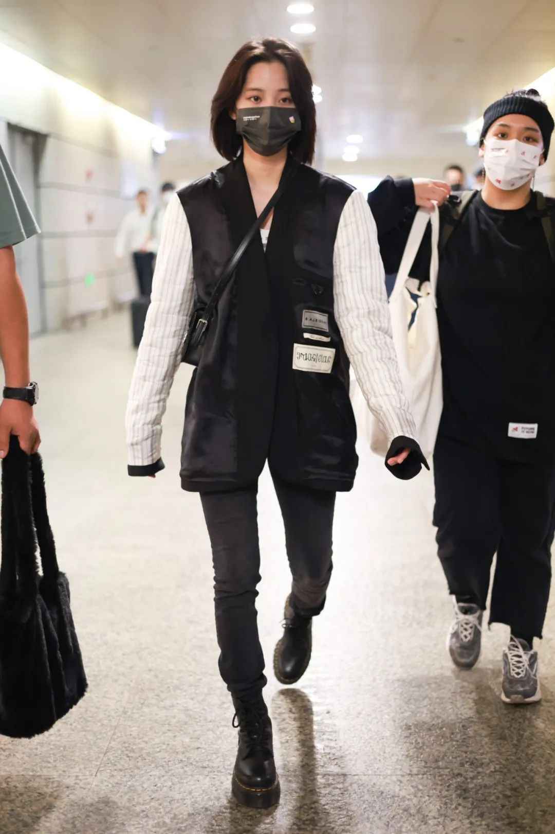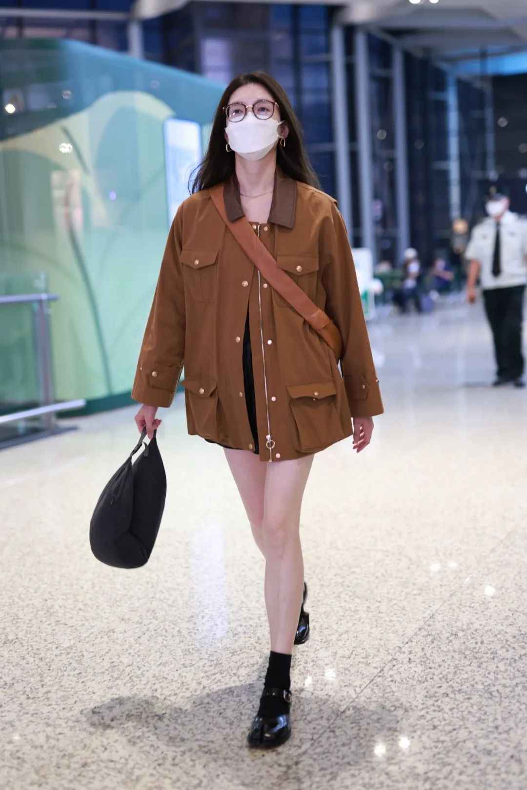 幂式光腿穿搭不实用,咱们可以穿保暖袜子或长靴,或者换修身裤子。