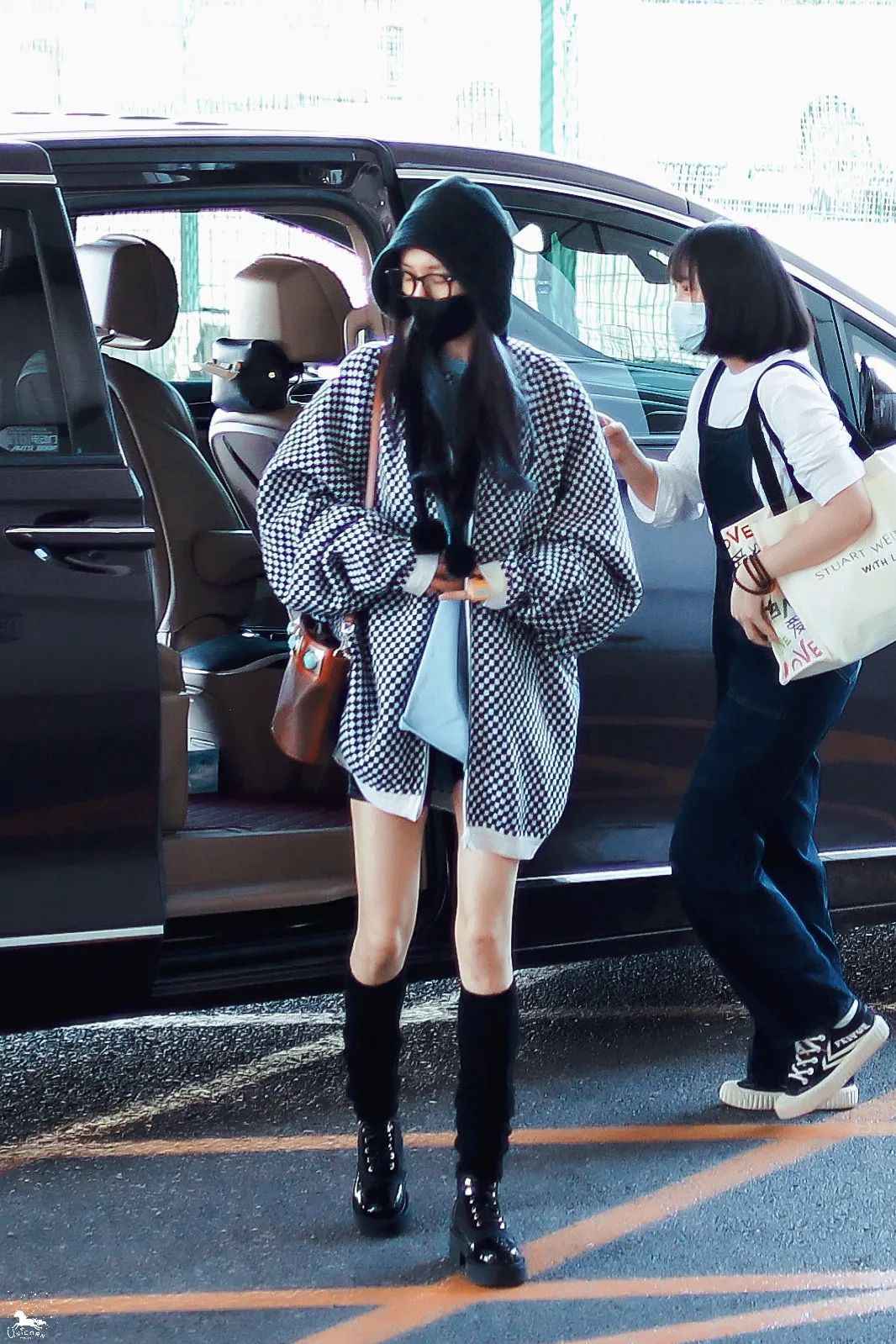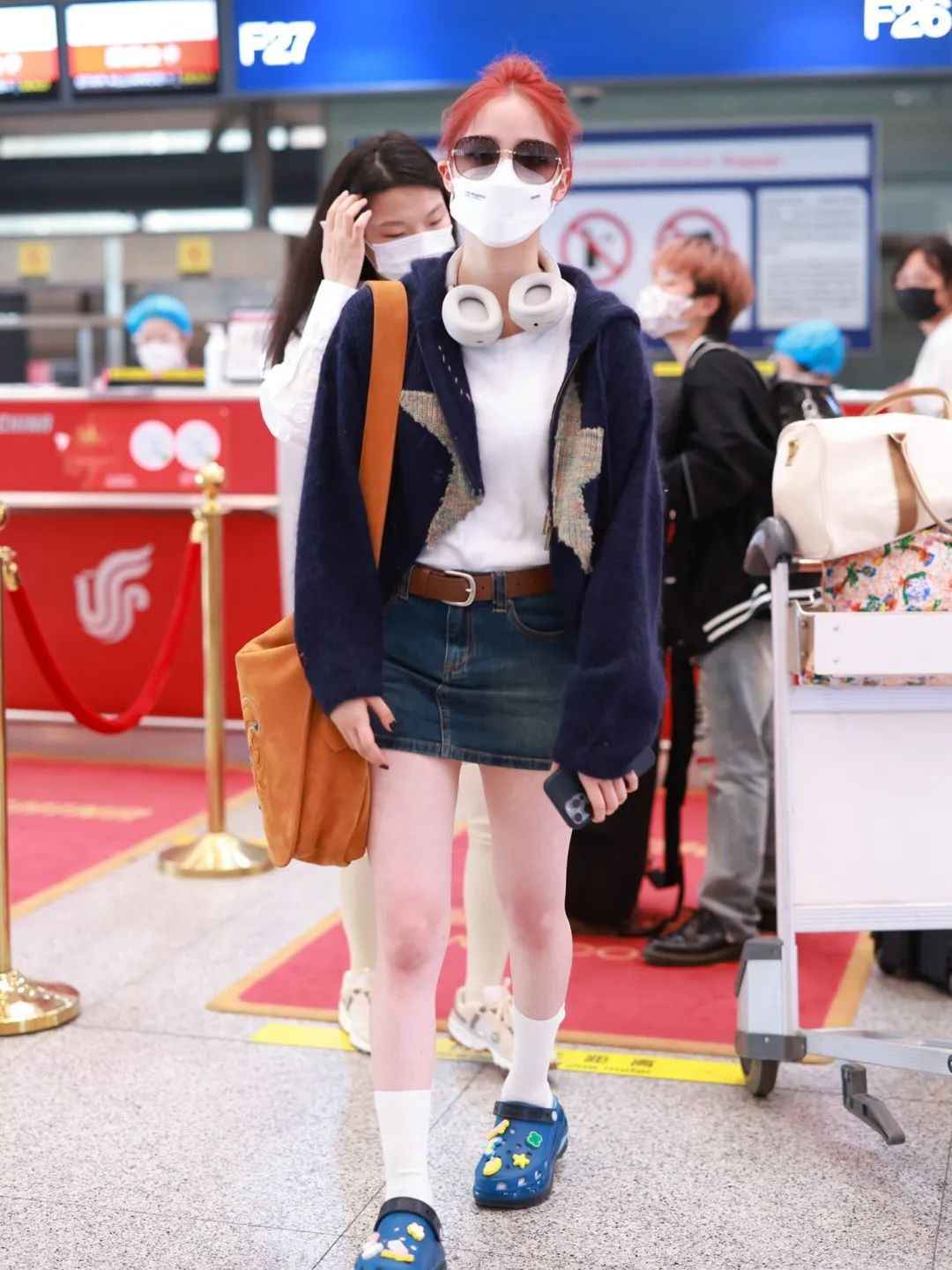 这套针织衫加低腰牛仔短裙的Y2K风很受欢迎,橙红发色像秋天的小柿子,从头到脚都是时髦元素。