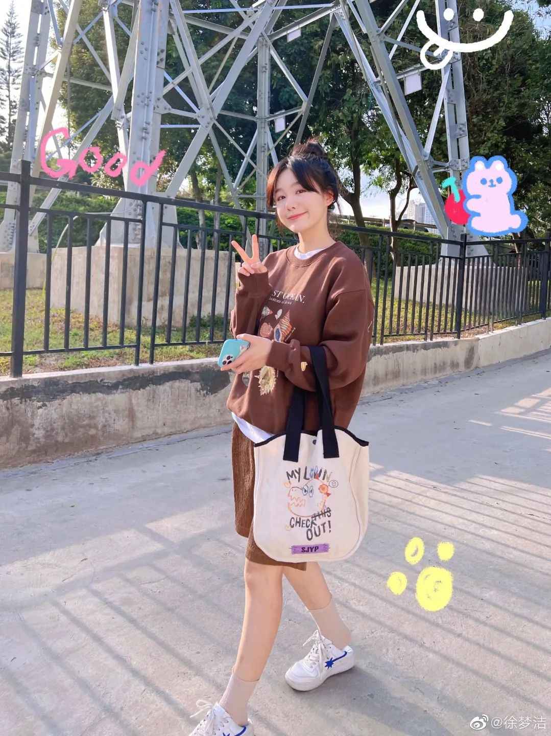 超级甜妹徐梦洁的私服实穿又少女,很多年轻女孩喜欢,她的风格是清爽的校园风,适合上学或周末出游。