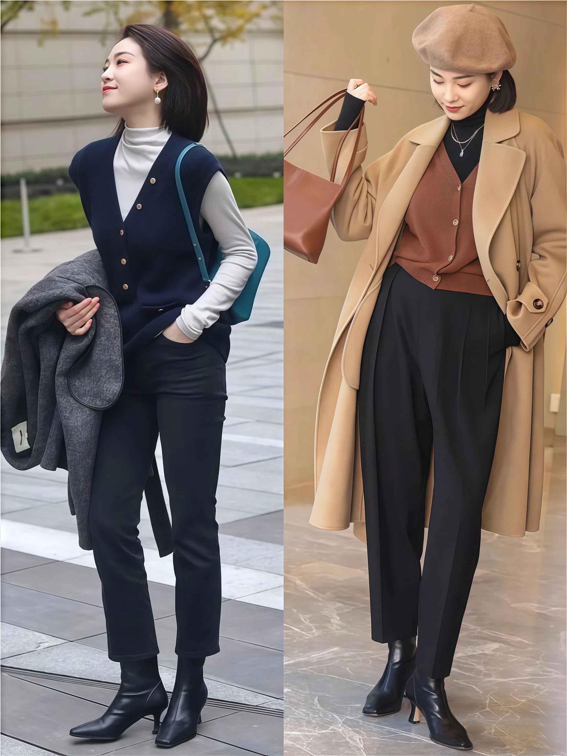 它会把视线截断在脚踝最细的地方,如果腿不够修长,容易暴露缺点。但如果你腿型好看,短靴能完美凸显优势。