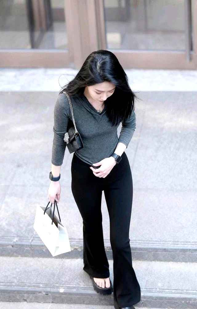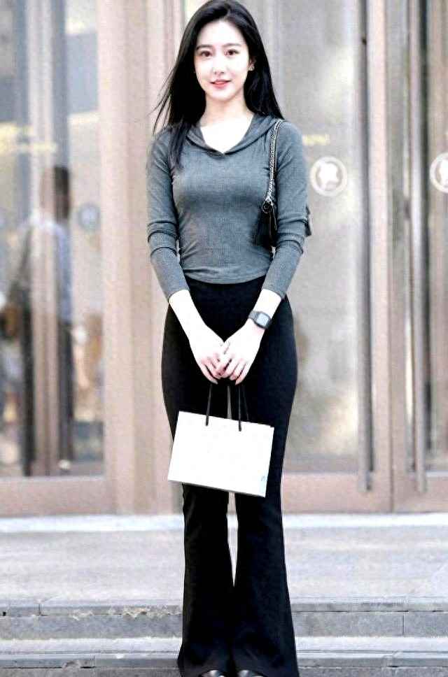 难怪这么多姐妹迷上“黑+灰”组合,针织衫配小黑裤,气质瞬间提升
