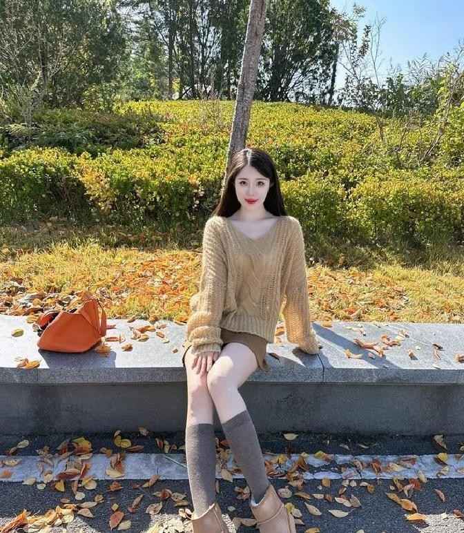 记得前阵子,我被一张朋友圈照片深深吸引。照片里,一位小姐姐穿着大地色系的搭配,低调中透出温柔,美得让人移不开眼。她上身是一件燕麦色V领针织衫,袖子是宽松的蝙蝠袖设计,慵懒又精致,那种米黄带点奶茶的色调,柔和得恰到好处。下身配了一条咖啡色短裙,裙子的深色与上衣的浅色形成鲜明层次,整体看起来温暖又高级。脚上那双浅咖色麂皮绒长靴,完美呼应了“上浅中深下浅”的搭配法则,整个人就像一幅秋日油画,柔和却不单调。
