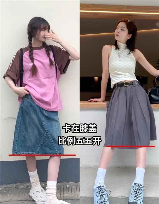 【?避开正中膝盖的五分半裙,比例五五分更显矮】
