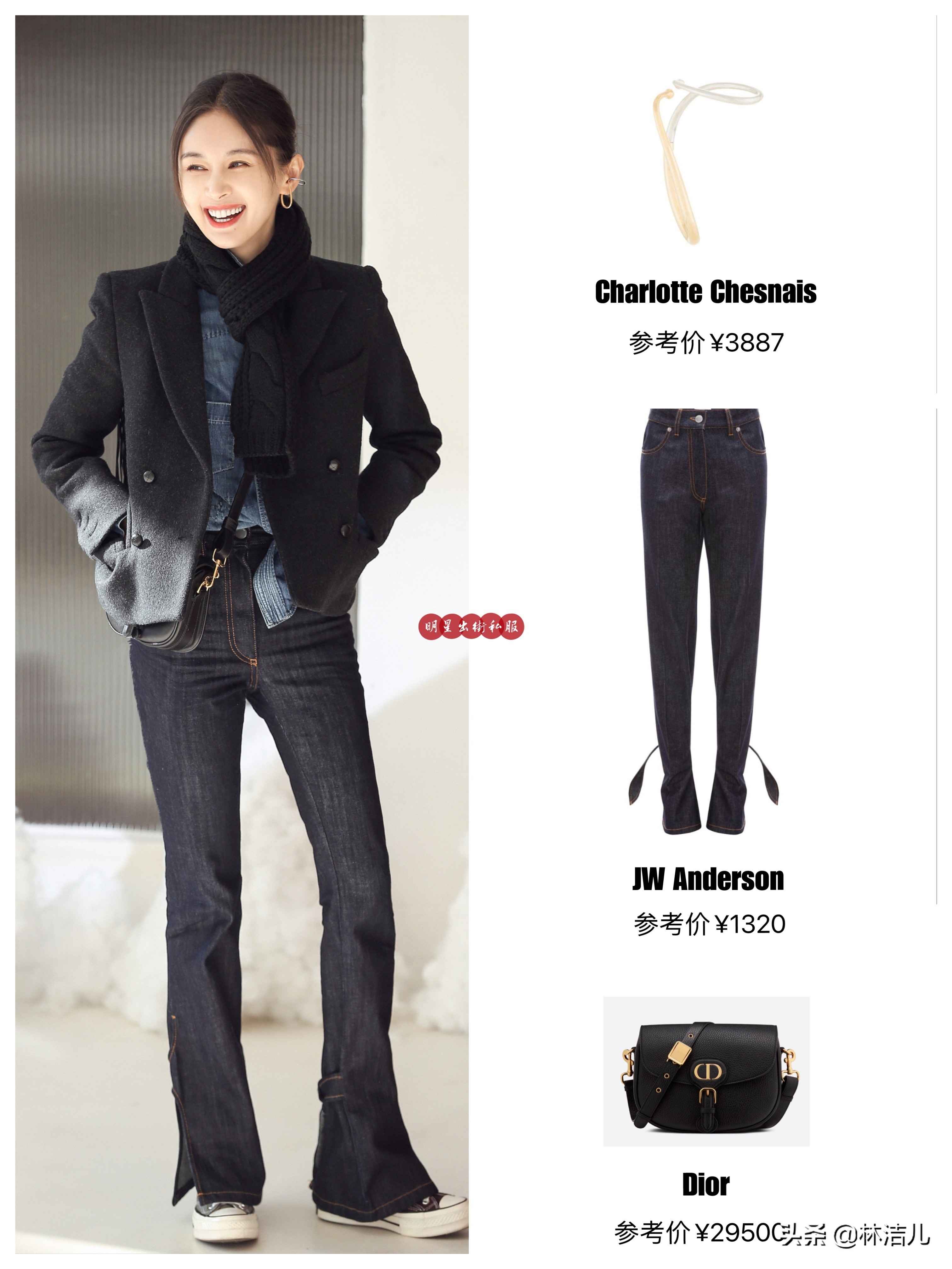 她还会选和上衣同色的裤装,上下同色视觉上显高显瘦,王子文把这招玩得炉火纯青。