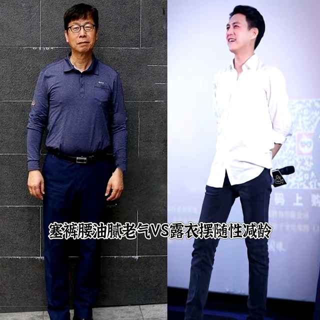 有网友评论:“靳东那套牛仔衫配高腰裤确实显精神,遮肚子效果一流,比塞裤腰强多了。”