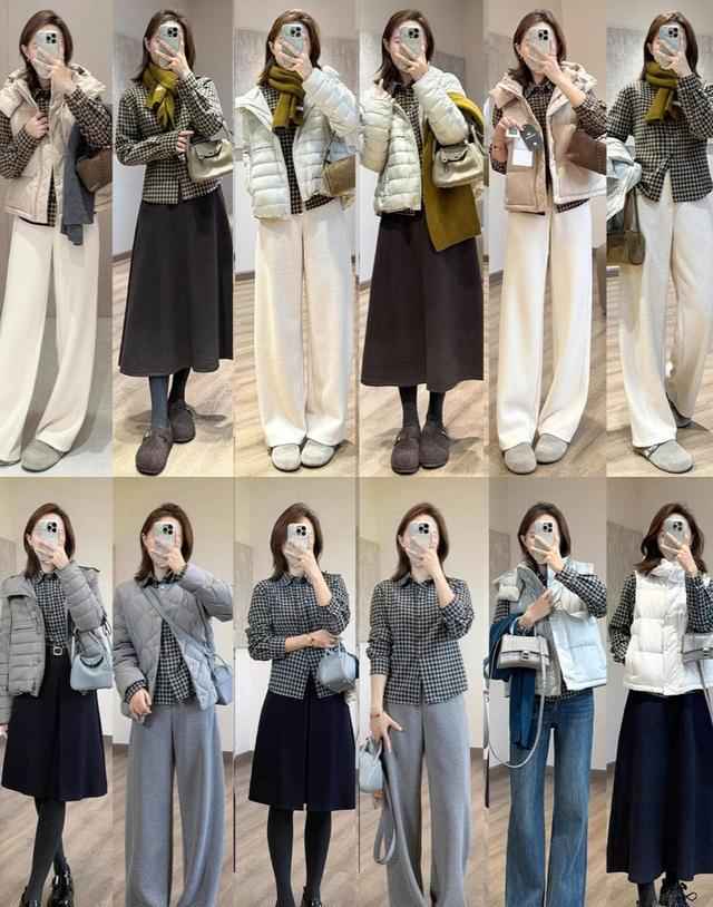 格子衬衫和马甲搭配,轻熟又能上班穿;配羽绒服就轻盈保暖;遇到裙子瞬间复古温柔。
