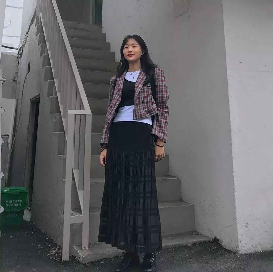 很多人觉得黑白灰层次感不够,所以韩系穿搭常用长短内搭来增加层次,让你在基础色中穿出高级感。