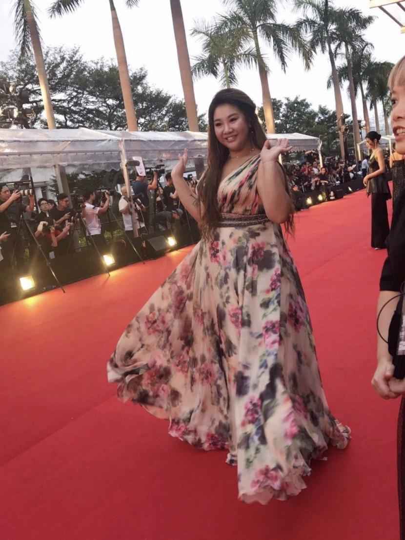 宝蓝色亮片连衣裙超显白,长款设计端庄大气,郑欣宜穿起来时尚感爆棚。想突出自己,就选亮眼颜色,衬得肤白貌美。