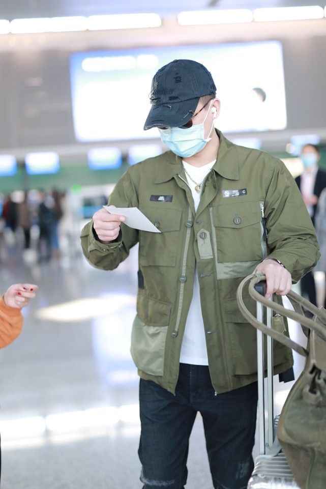 军绿色工装风外套不仅颜色有力量感,精致款式也是一大亮点。看得出欧豪对私服搭配很讲究款式选择,工装风外套实用的大贴袋很受欢迎,打造出的造型特别抢眼。