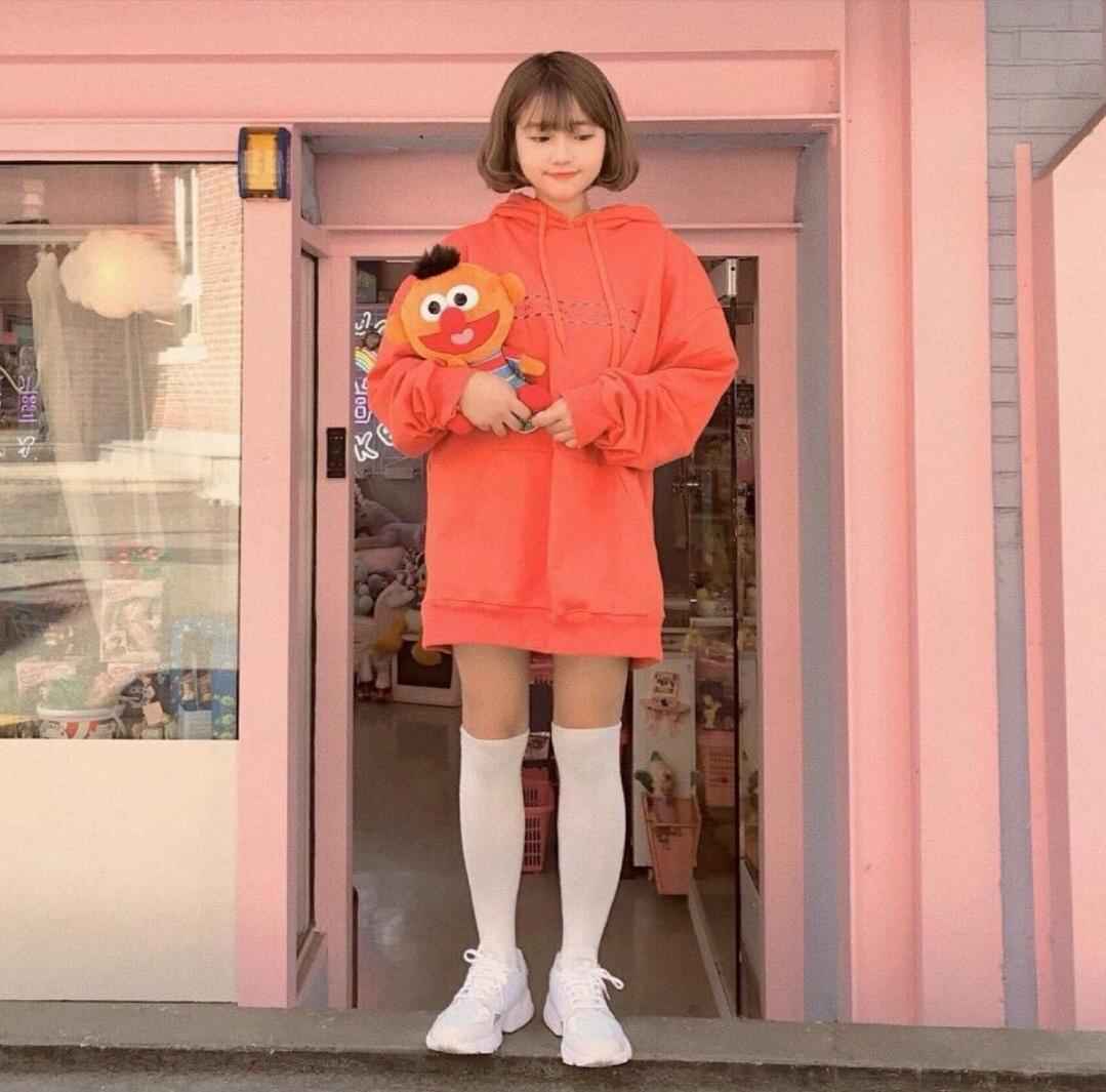 天热时脱掉外套,长款卫衣或T恤单穿也能遮臀显瘦。齐刘海造型甜美可爱,学生党直接照搬。