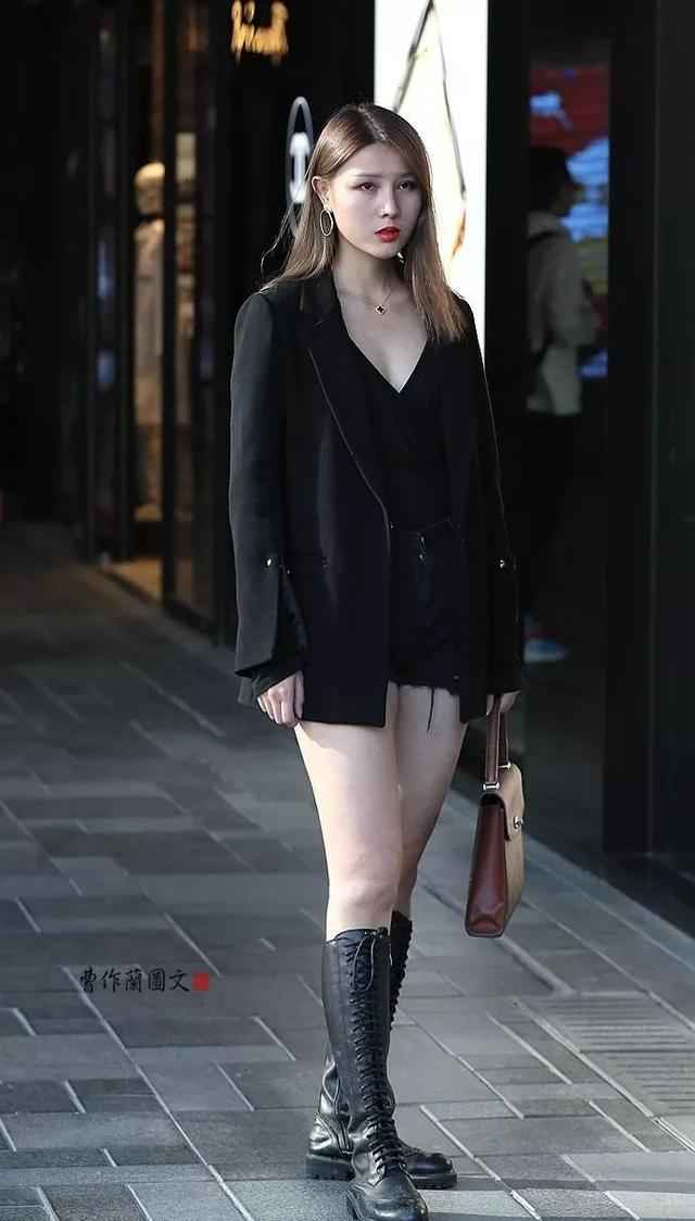 叠穿及膝袜和短靴的组合,在年轻人中特别火,通过层次感展现个性和趣味。