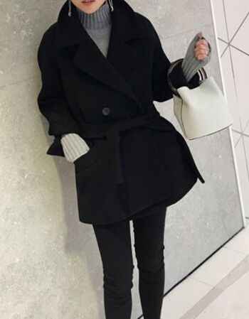 第三,小个子大衣穿搭技巧解析(point1)通过基础款进行个性混搭