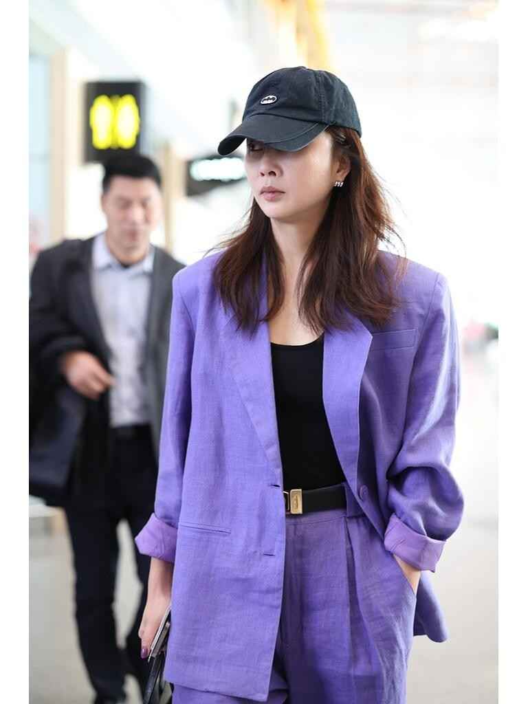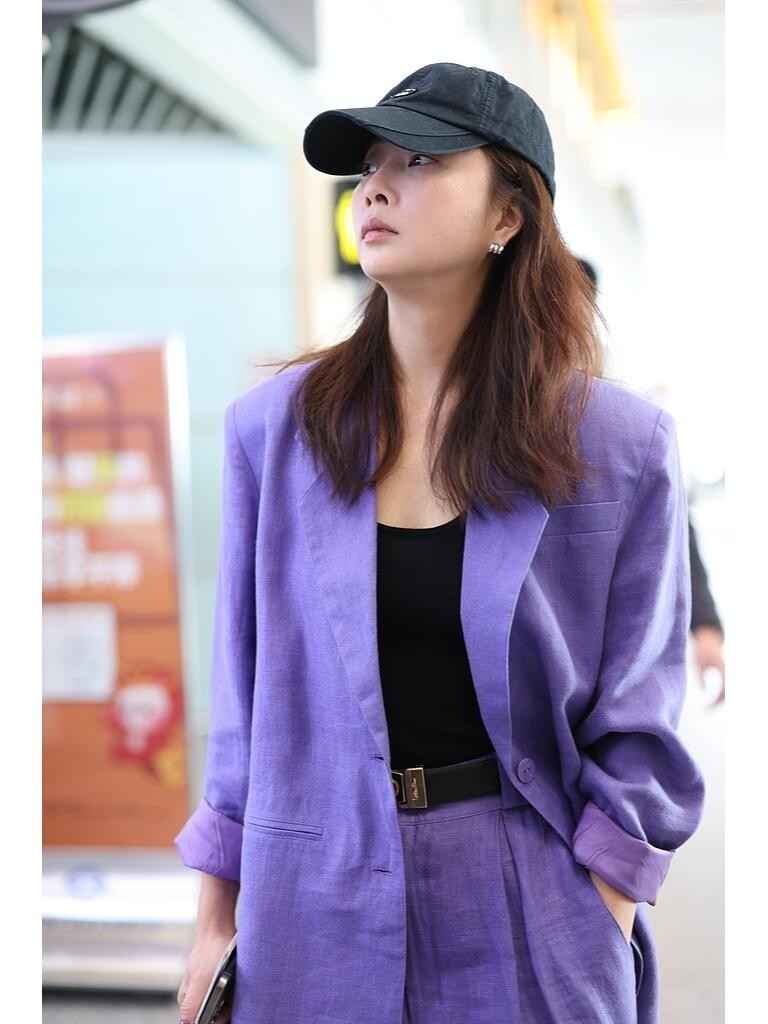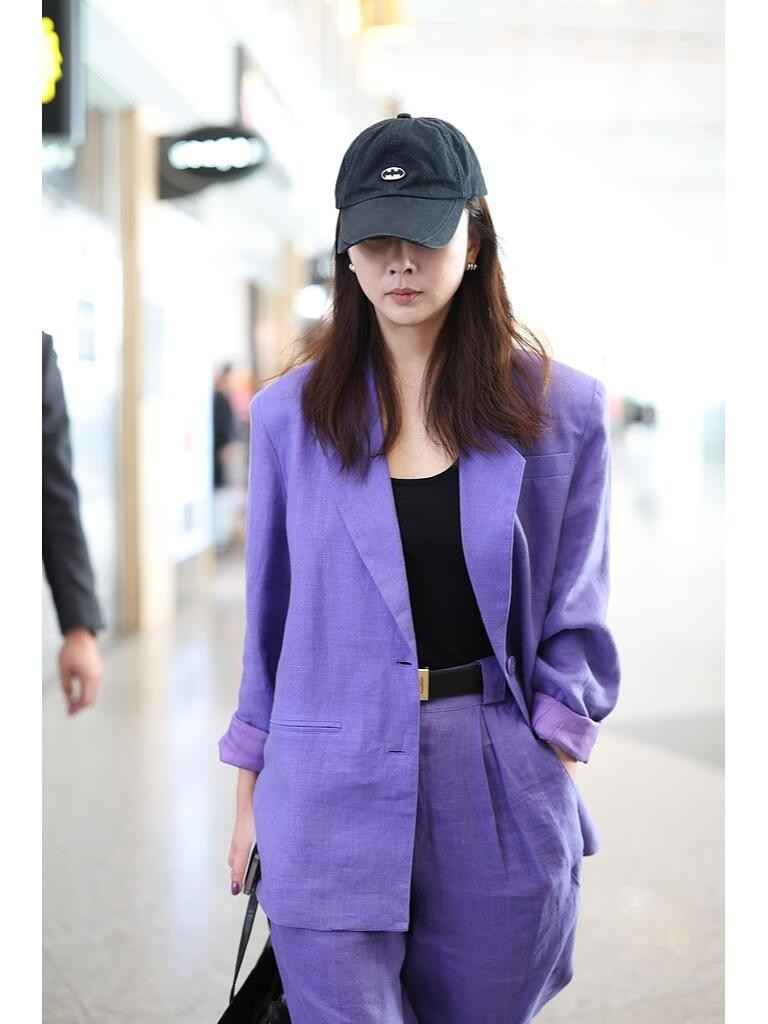 香芋紫西装套装简直是为亚洲肤色量身定制的!低饱和度显白又高级,黄黑皮也能穿出通透感。殷桃这套西装采用微阔腿裤设计,走路带风的同时完美隐藏臀腿赘肉。